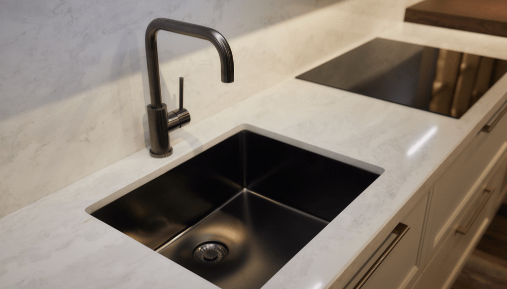 - Naturstein, Keramik (Dekton), Quarzkomposit