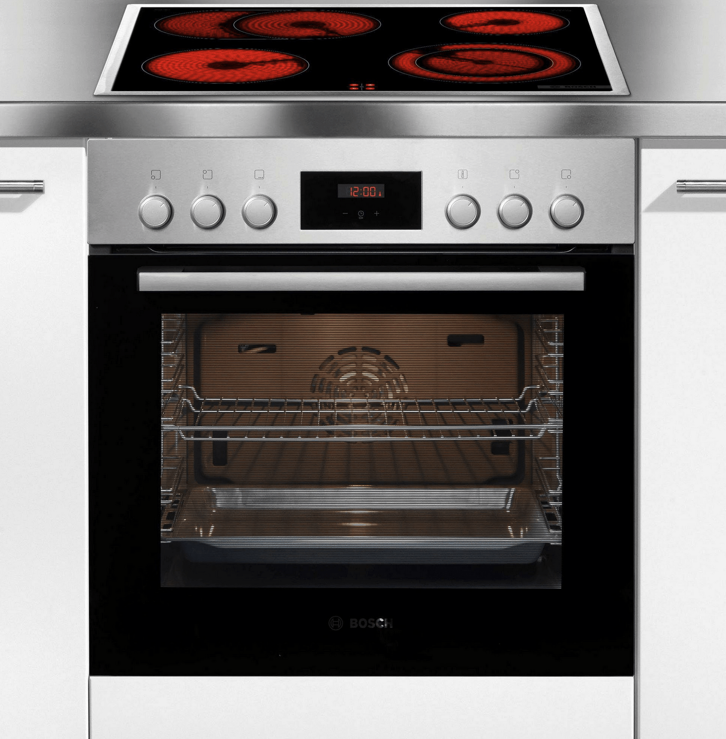 Diese speziellen Herdsets laufen mit einer Phase Strom. Beide Geräte teilen sich eine Phase Strom und Sie können gleichzeitig kochen und backen.