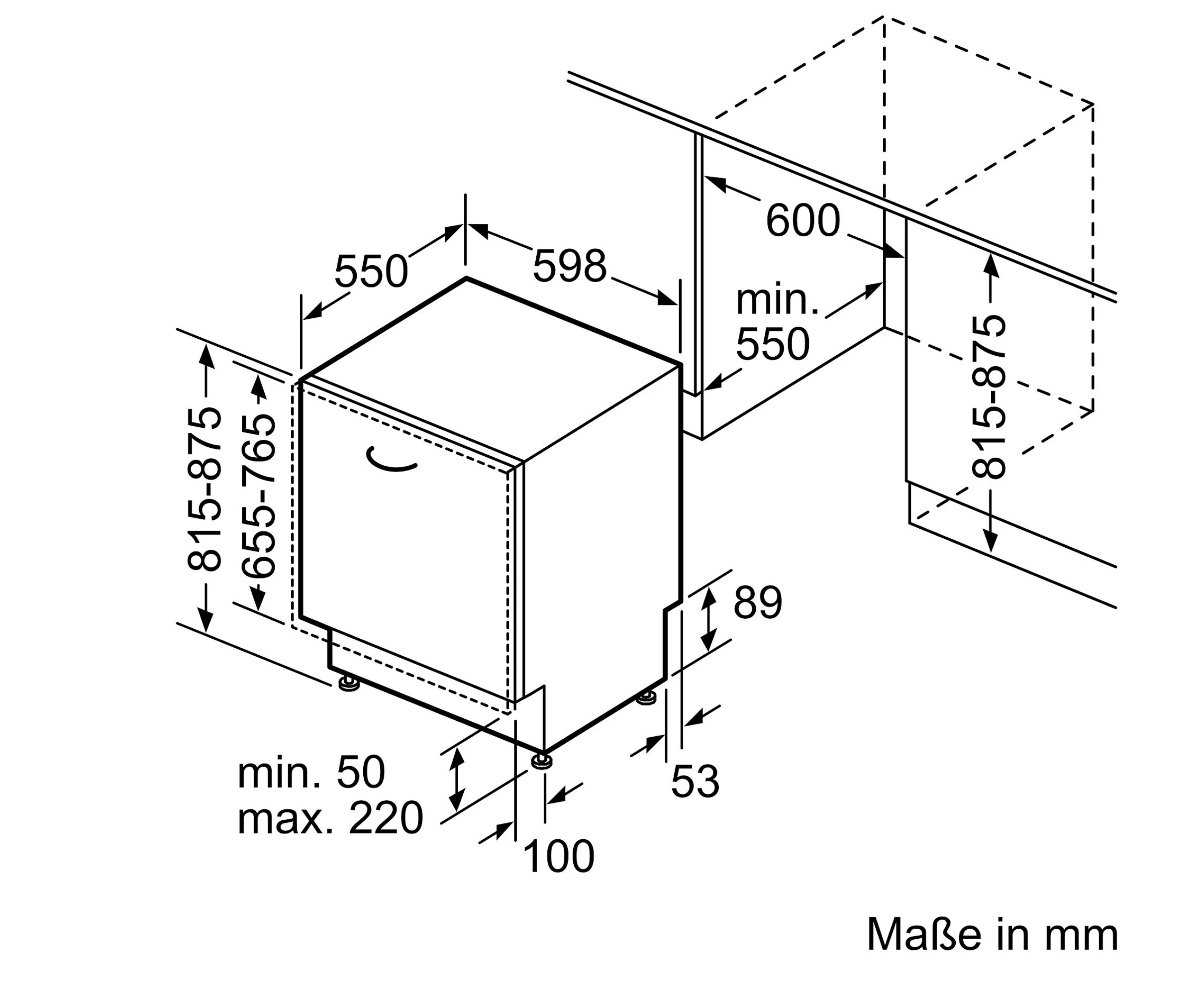 Bild 1 zeigt ein Gerät, welches eine Sockelhöhe von 50 – 220 mm benötigt und für IKEA Küchen mit einem Sockel von 8 cm kompatibel ist.