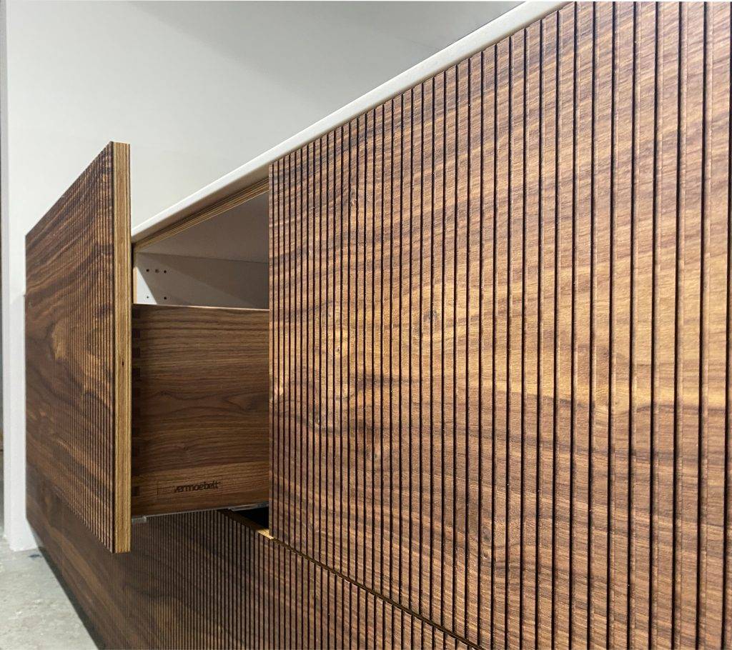 Bei uns können Sie Muster der Designlinien „One“, „Luna“, „One Line“, „Blue St.“, „Klar Linje“, „Senza M“ u.v.m. betrachten, um einen realistischen Eindruck zu gewinnen. Es kommen Oberflächenmaterialien wie Laminat, Linoleum oder Fenix zum Einsatz, ein Träger aus Multiplex ist hier die Regel.
